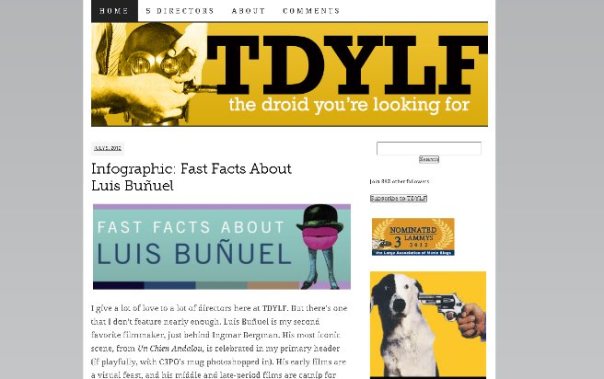 I think I first stopped by TDYLF during the Lammys this year over at the Lamb since it was nominated (and won) for funniest writer this year. It’s an interesting mix of funny lists, random posts, great infographics, and information and reviews of classic movies. Whether it’s The 8 scariest things in the Wizard of Oz, Which Comedy You Should be Watching, or a Re-Watchterpiece Theatre, there’s a lot of good stuff to find over there. But enough from me, let’s hear what the writer John LaRue has to say about it.