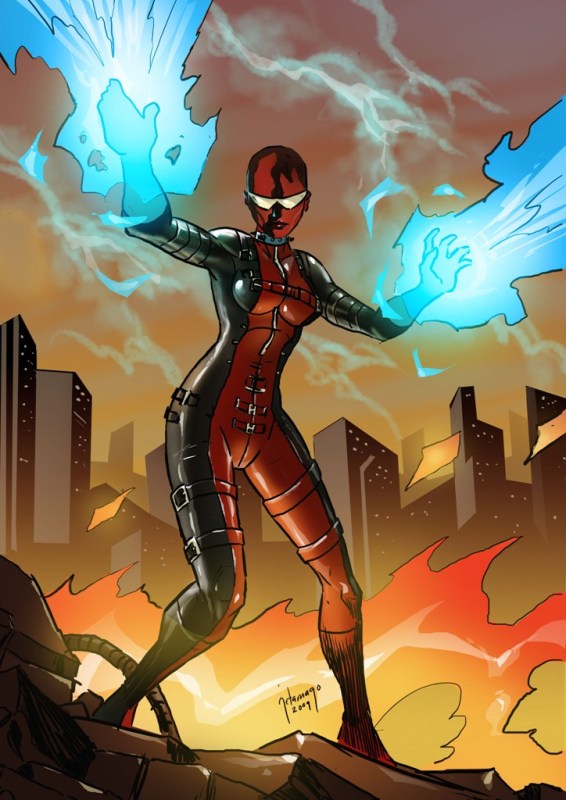 Not only was the MA community welcoming, but I also became involved in the CoH art community. In fact, the logo for this site was drawn by Liz, who I met through the both the CoH LiveJournal community and the CoH art community. If you want to see more of her work, you can visit her Tumblr site. I had a running theme for some of my favorite characters to play, which I called “Burnt Matchstick”. I’m the sort of player who always picks female characters to play. The way I look at it is that it’s not a representation of myself, but a character whose story I’m interested in, and I’ve always been more interested in a female protagonist. Which, as a side note, makes me so disappointed that there are no good lead female superheroes in movies. Anyway, I was trying to come up with a concept for my first male character, and I thought of making his costume be a big orange stripe down the middle of his costume, black on the outside, and a round, black, faceless helmet which resembled a matchstick with a burnt head. His powers? Setting himself on fire a la the human torch, and fire punches. For those reading this who play the game, he was a Fire/Fire Brute (a villain). I ended up liking him so much I remade him as a her, and a Fire/Fire Tanker (a hero). After a few months, I had a character named Burnt Matchstick on almost every server, each one with a slightly different look, a different backstory, and a different version of the Fire/Fire combination, some control, some long range, they even have sets where you can heal with fire.