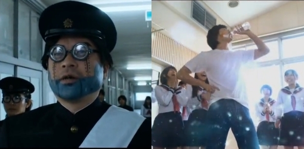 Of course, Hentai Kamen wouldn’t be a superhero if he didn’t have some supervillains to fight against. His main nemesis is a bratty kid from a rival school who seems to go around to various schools to defeat their entire martial arts clubs to take it over for himself, but he also mentions some sort of buried treasure hidden under the school. He’s an annoying kid who gets defeated pretty early on before sending a variety of assassins after Hentai Kamen which are all various odd stereotypes with their faces painted as if they’re some sort of android. There’s the goody-two shoes who comes to the school and hits everyone who is even slightly violating any sort of school rule along with his little gang. He’s followed by the pleasant boy who is surrounded by awestruck girls and he makes everything around him sparkle. There are a couple others before what the subtitles basically refer to as “bizarro” Hentai Kamen. The main difference is that Bizarro HK wears his panty-mask inside out, supposedly denying himself the perverted pleasure of sniffing the panties and I can’t believe I justed typed that sentence.