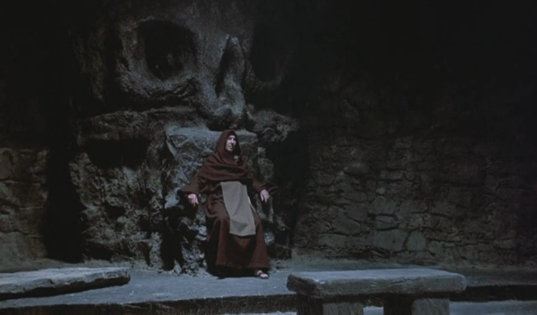 As I mentioned, this movie is an anthology with a wraparound of a group of people visiting a catacombs when they get separated from the group and end up trapped in a room with a mysterious figure in a hooded cloak who in turn reminds them each of how they got there. Although I think it’s funny that it appears that it’s not a story that’s being told to the others sitting around the room, but it’s something that they merely remember in their own head, so everyone else is just sitting around watching them stare off into space for ten to twenty minutes, or at least that’s what I’m assuming happens. While the Cryptkeeper here is not anywhere near the level of the animatronic Cryptkeeper voiced by John Kassir, he does a passable job without bringing in the bad puns and high pitched laugh, instead going with a much more morose and creepy vibe.