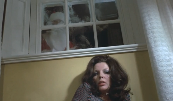 Which does bring me to one of the points of this blogathon, while this was actually adapted from a graphic novel, there are only a few moments that I felt looked inspired from the comic book nature of the stories. One of them was the aforementioned zombie moment, I also felt like the look of the wooden corridor had a nice look to it, and there was a nice bit in the first segment with the homicidal Santa Claus when he is seen in the window while the woman is crouched just below the windowsill, and also the final scene where he is behind the curtains and puts his hand through the slit in the middle to ring the bell. I also did quite enjoy the bit during one of the middle segments where a large portion of it was done in first person perspective where they hide the face of the character until he finally finds a mirror. There’s quite a few moments of visual flair even though the majority is shot fairly simply and on a lower budget.
