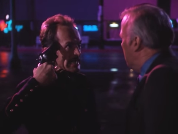 This is one of the better serious episodes in this season so far. There’s very little humor throughout, but it works very well in this context. I would almost consider it a update of the classic noir movie Double Indemnity, although generally just because of the insurance angle. Here, an insurance salesman falls for a rich man’s wife as he decides to take out a new multi-million dollar policy, but instead of collecting on the policy, they kill him before the deal is finished to take the suspicion away from them and merely have his wife inherit his already large fortune. Meanwhile, Michael Ironside comes into the picture to blackmail them with pictures of the murder and the terms are the woman.