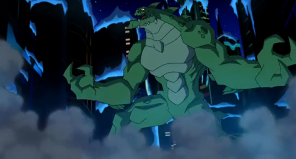 The film starts out with one of the tired tropes so it starts in the middle of the action before the opening credits then cuts to a “two weeks earlier” title card and things move on as normal. At least it does have the benefit of having this absolutely insane concept that’s right in the title where Batman is in a giant mech suit fighting a giant lizard (who you may or may not realize is Killer Croc until the movie tells you so) in the middle of Gotham City. Eventually we find out that Mr. Freeze is experimenting with creating giant creatures in the Arctic (or Antarctic, I forget) with Penguin along because of reasons. When they are foiled by a group of oil riggers with a giant drilling laser, they decide to pick up and head to Gotham City because that makes sense. Along the way, they pick up Croc, Bane, Clayface, and lesser known villain Chemo from Arkham and apparently use the chemicals of the latter to perfect his growth serum and use it on Croc. All because Freeze wants a cold city to feel normal in.