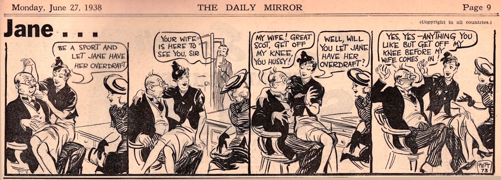 I’ve gotten another free month of Amazon Prime and I thought I’d put it to good use to watch a couple movies based on a serialized comic strip that I knew very little about. Really the only thing I knew about it was that it was serialized, and that the main character Jane often had her clothes ripped off of her body, leaving her in her underwear. It very rarely or only just once went fully nude, it was generally just slightly bawdy for that era and treated with a Benny Hill-esque sense that the nudity was intended more for comedy and embarrassment rather than eroticism. This was the first adaptation and it was apparently made quick and cheap and it really shows. There wasn’t a whole lot going on for this movie other than a couple cheap laughs and the bare minimum of a story to it.