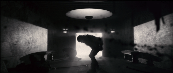 The first thing that has to be mentioned about this movie is the style. It is really going for an homage to the classic Universal Monster horror movies with the black and white and occasional over-acting. There are bits of color, mainly the red glow from the Bloodstone and the ending does come back into full color for the denouement. The music is also just as excellent as would be expected from a noted composer as director. It never detracts from the action, it always augments it and the classic choice for Somewhere Over the Rainbow for the switch to color was a lot of fun. The black and white also helped accentuate the gore in some cases, one of the best scenes was when the titular werewolf goes on a killing spree in a small room while the camera stays mostly motionless in the distance with blood spatters partially obscuring the view.
