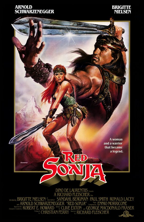 I have been going back and forth on whether or not to have this movie be a part of the rest of the movies or to have it under my “Almost Super” category. It’s based on a character in a Marvel comic book, but since it’s much more of a low fantasy rather than a superhero so I ultimately decided to use the Almost Super tag. Another reason why I wanted to review the movie, aside from the fact that I vaguely remember watching it and liking it when I was younger, is that the Lamb is having its Lamb Acting School for Arnold Schwartzenegger this month, and I’m not quite ready to revisit the 90’s Batman series ending in his portrayal of Mr. Freeze, so I was left to choose between the two Conan movies and this movie. And while the movie is called Red Sonja, Arnold still manages to get top billing as the secondary lead above acting newcomer Brigitte Nielson. While there were some interesting parts in the movie, it did not nearly hold up to my memory of it.